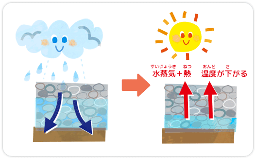 車の騒音を減らしたり、歩道を歩きやすくするため雨水を地下に通したりする舗装を行っています。また、雨の日などに溜めた水を晴れた日に蒸発させることで路面(道路の表面)の温度を下げ、夏の暑い日でも涼しく歩ける工夫をした舗装も行っています。
